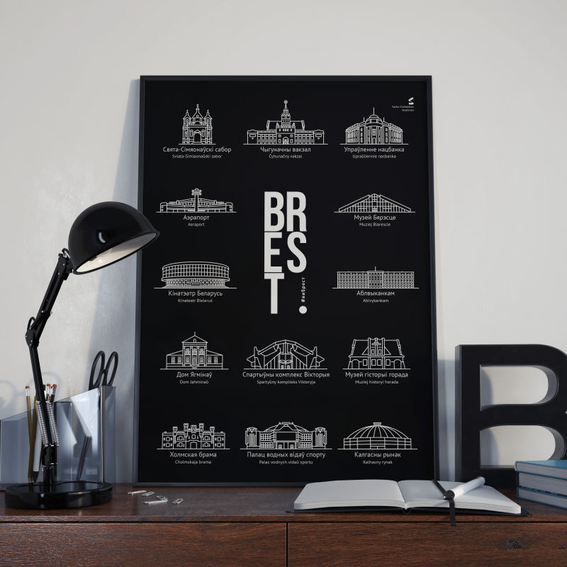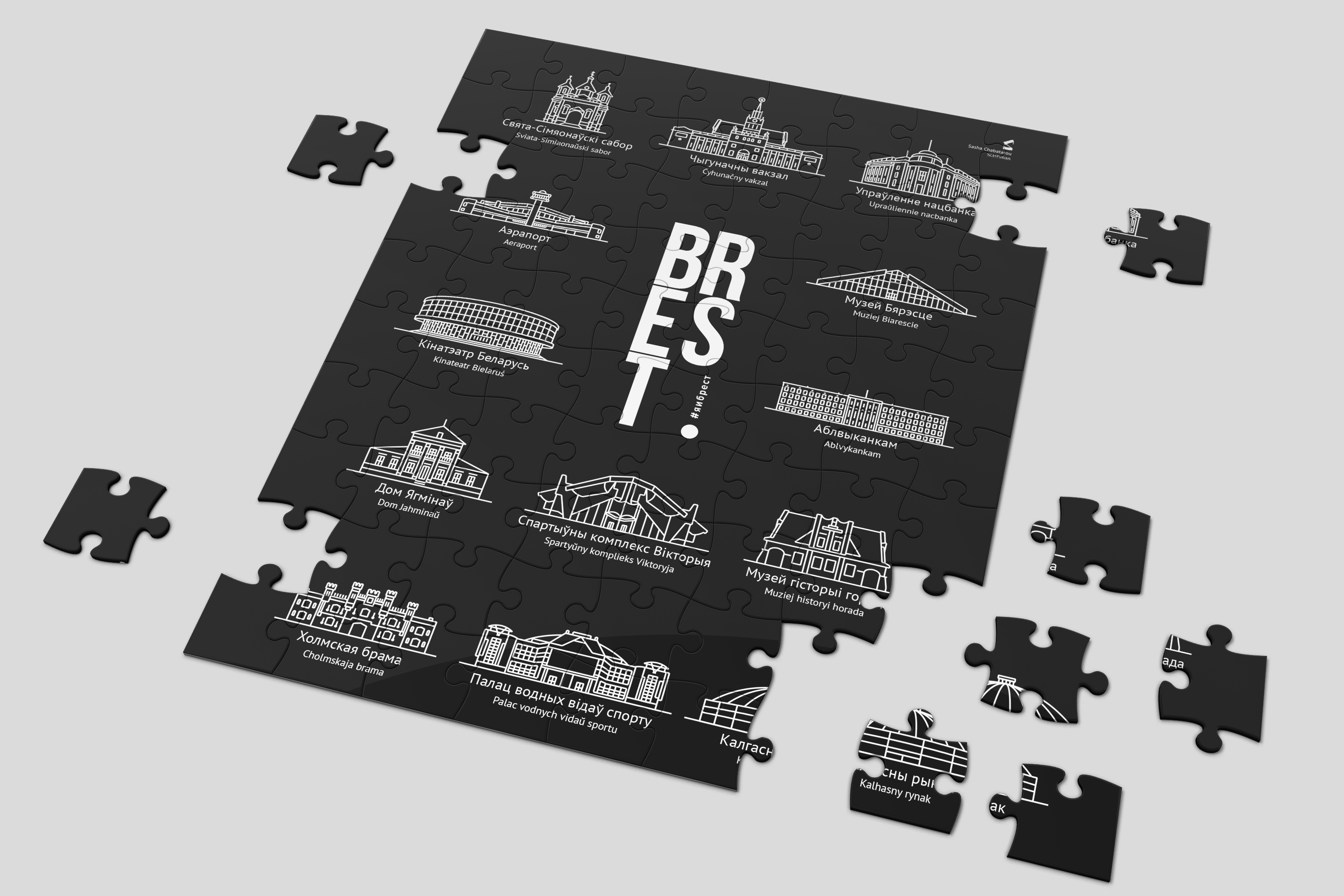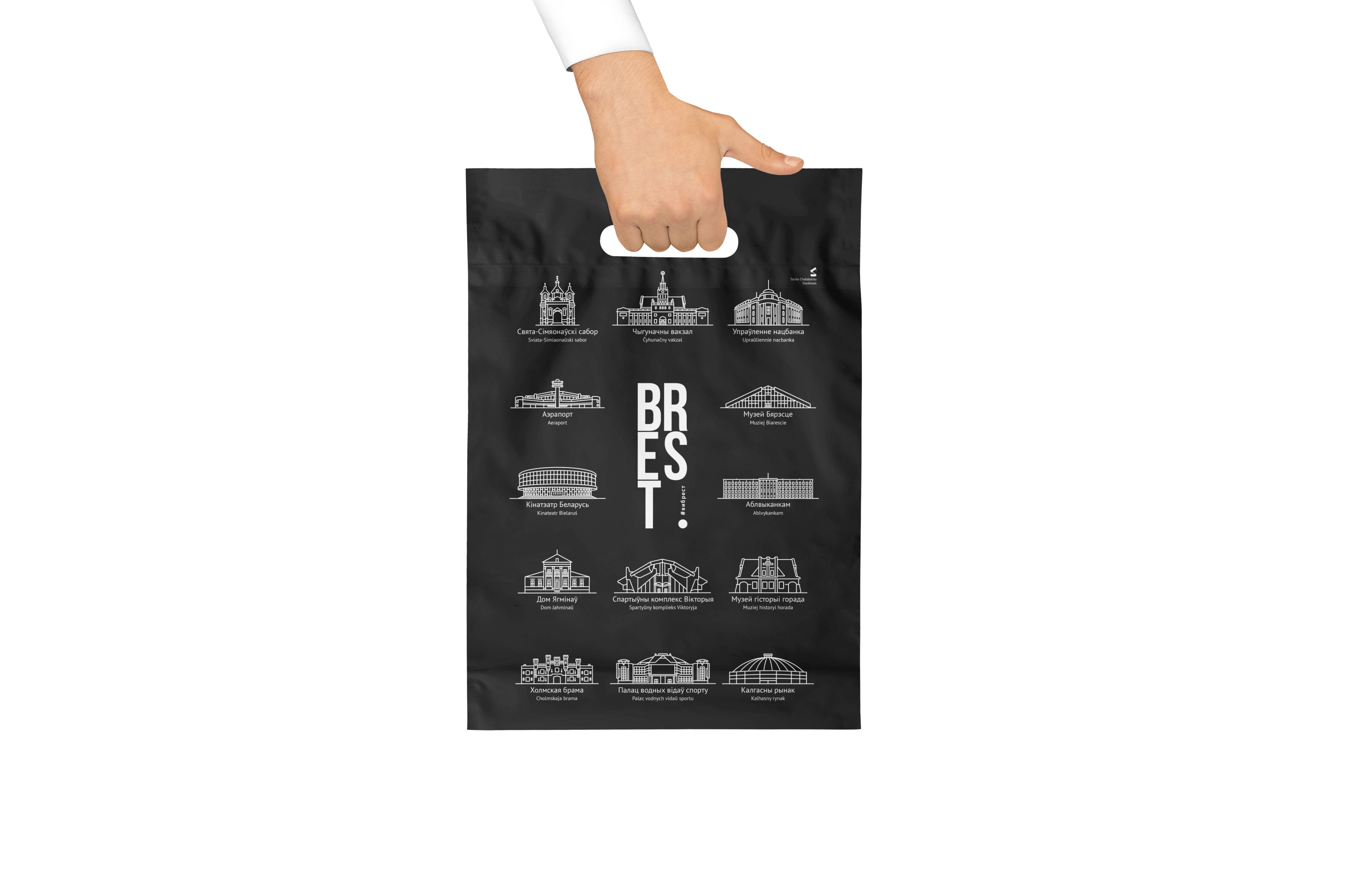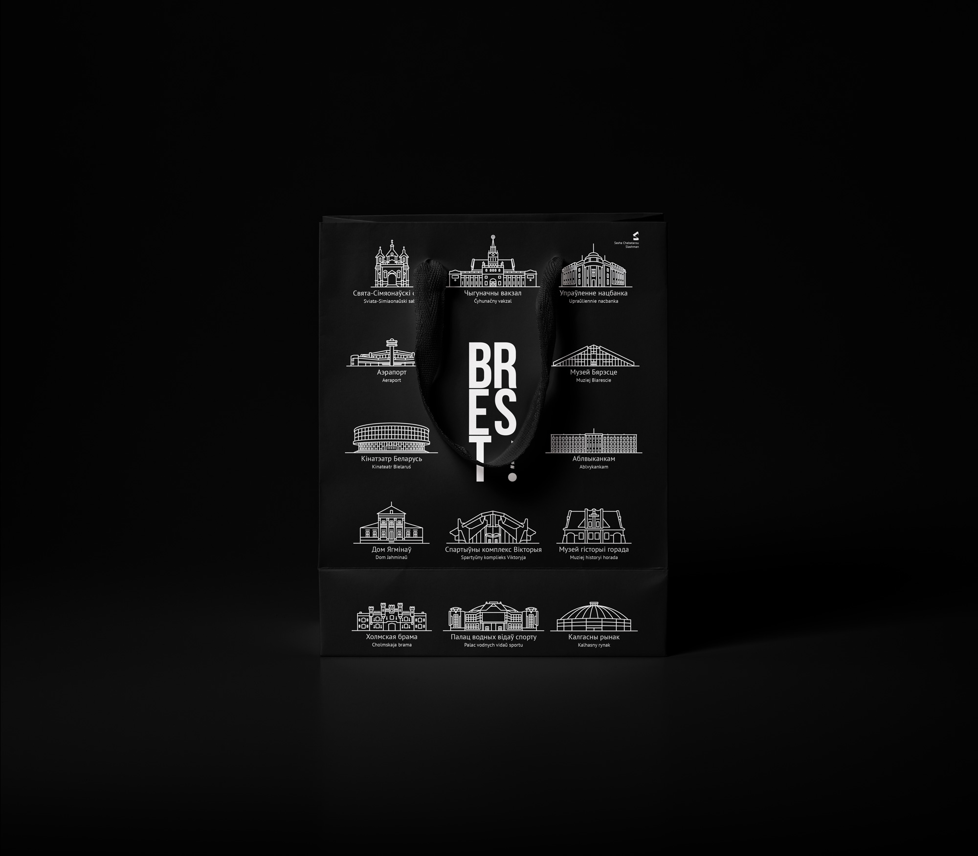 Лагатып увасабляе ідэю сілуэта Брэсцкай крэпасьці. Колер адлюстроўвае чырвоную цэглу