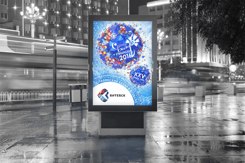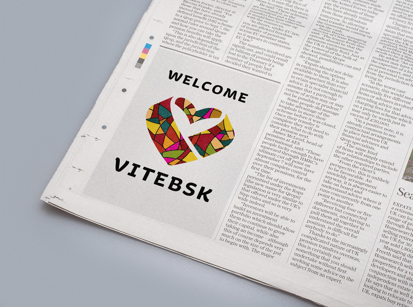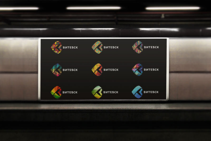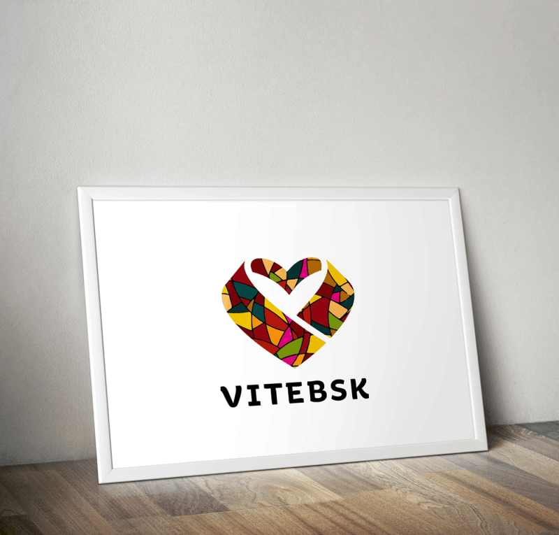 Лагатып увасабляе ідэю шагалаўскіх каханых птушыных палётаў і віцебскі дух мастацтва. Колер адлюстроўвае творчую разнастайнасьць і знакамітыя вітражы.